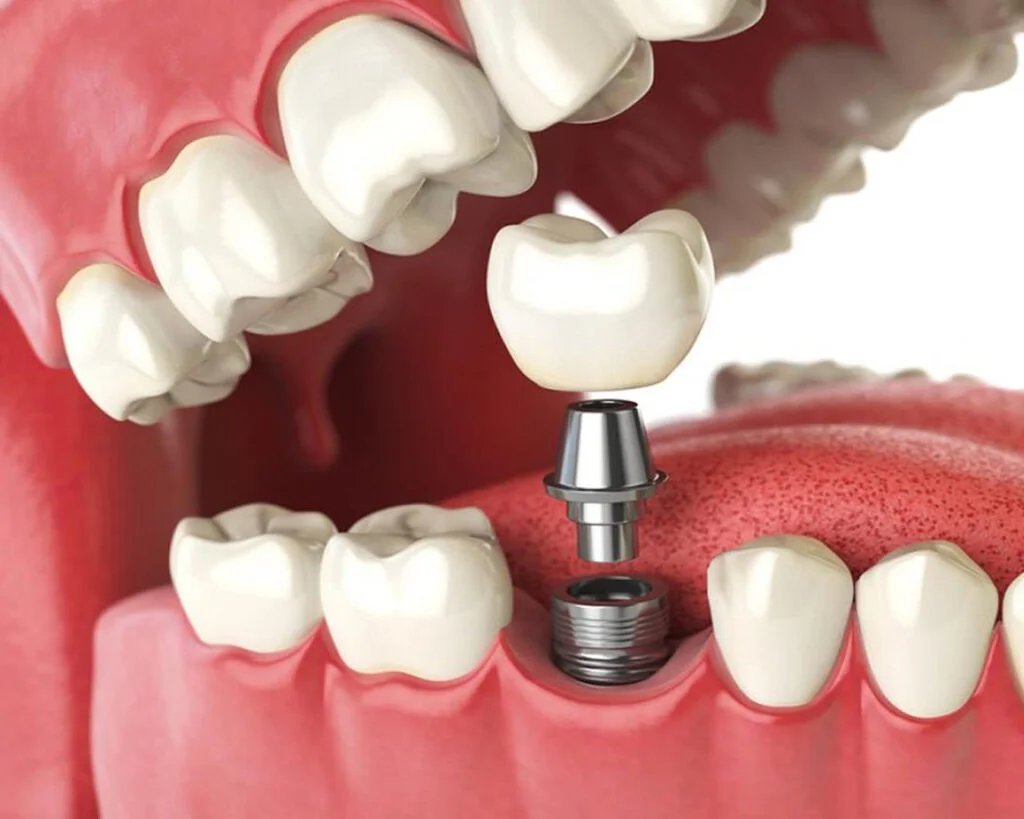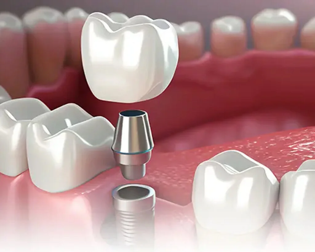 هي تعويض للسن الطبيعي المفقود او المتكسر تماما بجذر صناعي وتركيبة متناسقة مع شكل ولون الأسنان الطبيعية